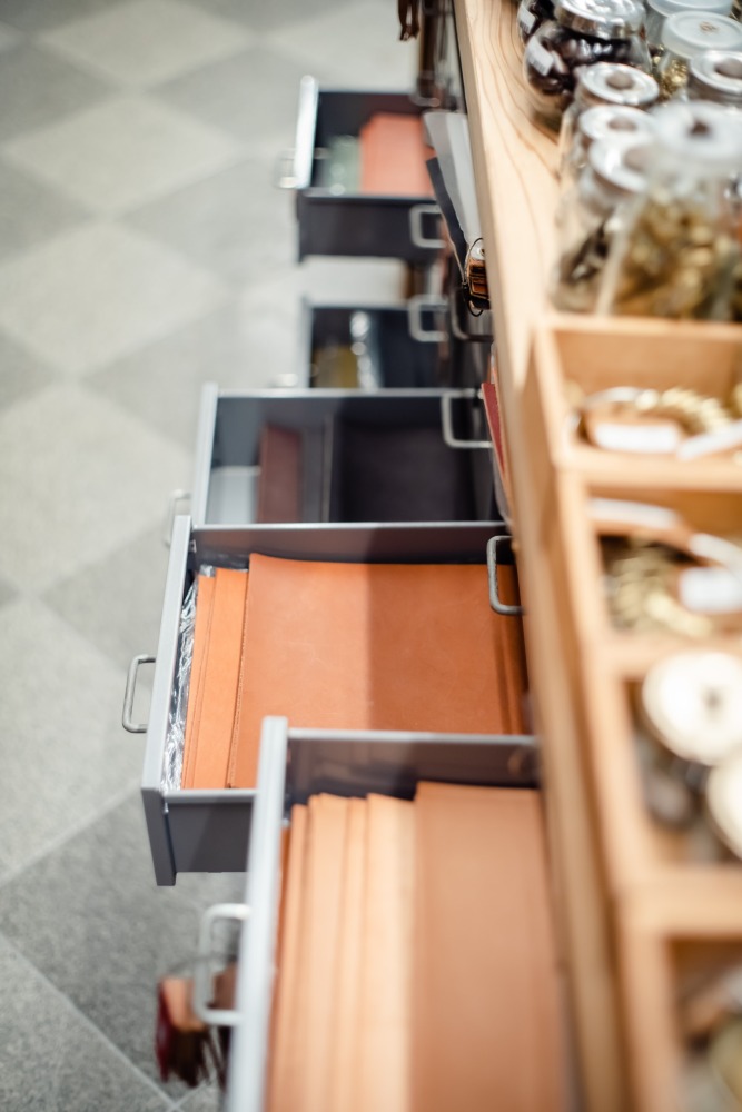 革素材をはじめ道具や金具パーツなどレザークラフトに関する様々な商品を取り扱う