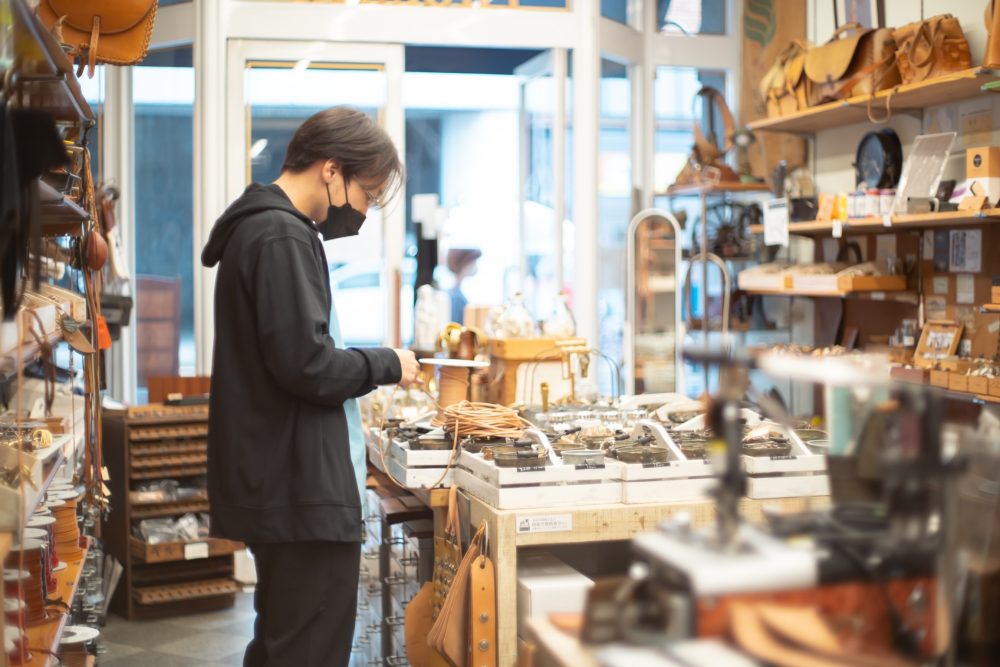革素材をはじめ道具や金具パーツなどレザークラフトに関する様々な商品を取り扱う