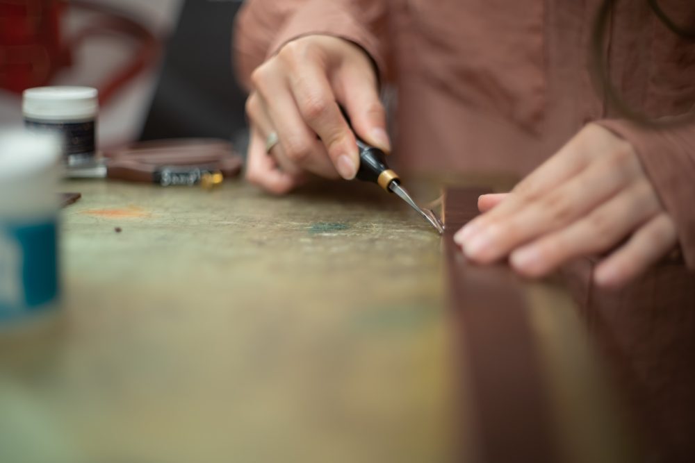 革素材をはじめ道具や金具パーツなどレザークラフトに関する様々な商品を取り扱う