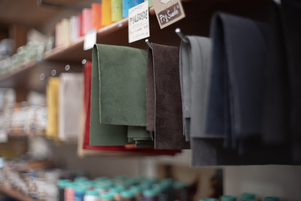 革素材をはじめ道具や金具パーツなどレザークラフトに関する様々な商品を取り扱う