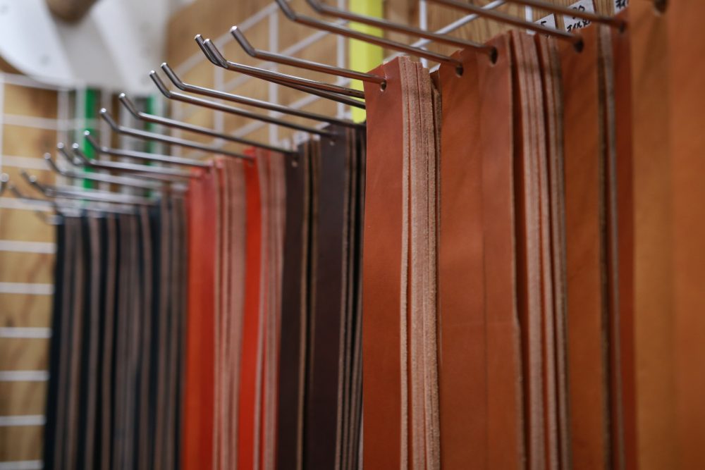 革素材をはじめ道具や金具パーツなどレザークラフトに関する様々な商品を取り扱う