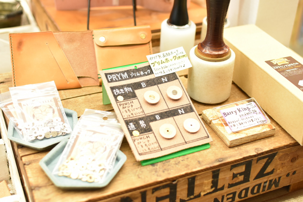 革素材をはじめ道具や金具パーツなどレザークラフトに関する様々な商品を取り扱う