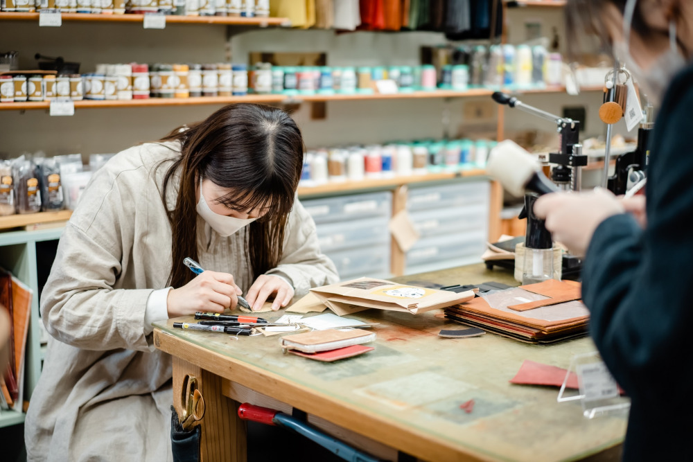 革素材をはじめ道具や金具パーツなどレザークラフトに関する様々な商品を取り扱う